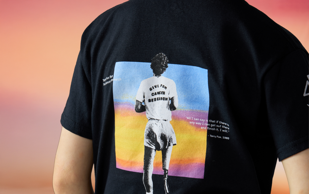 On the back of the shirt, Terry runs ahead—seen from behind, leading millions across Canada and around the world to carry forward his fight against cancer.